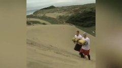 在这段视频中,我们可以看到沙漠的壮丽景色。金黄色的沙丘连绵起伏,仿佛是大自然精心编织的巨幅画卷。阳光洒在沙丘上,闪烁着耀眼的光芒,让人不禁感叹大自然的鬼斧神工。